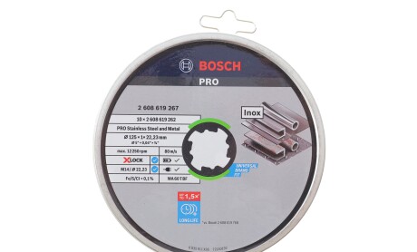 Круг відрізний 125 x1x22,23 мм X-LOCK Standard for Inox (к-кт 10шт) 2 608 619 267